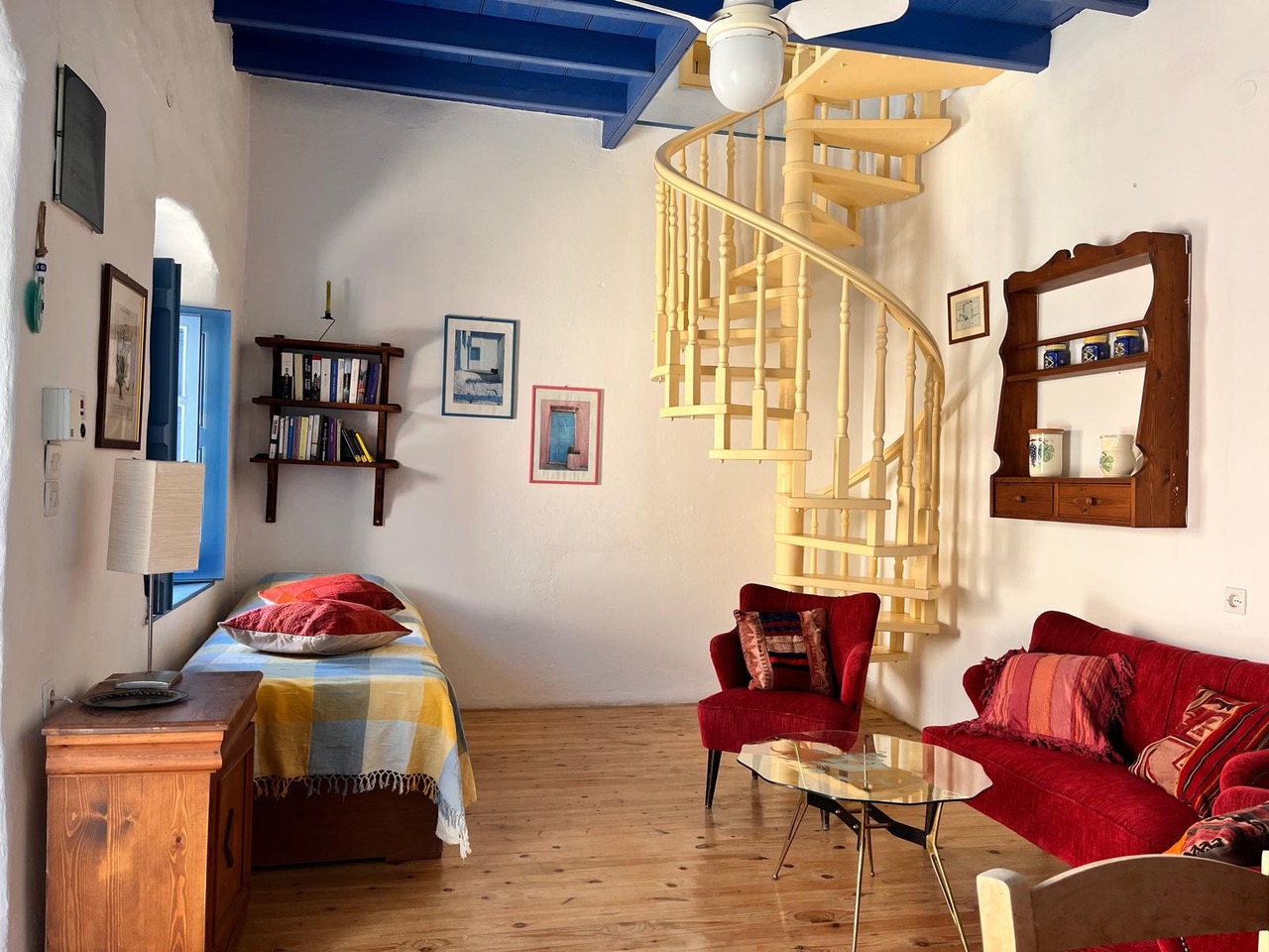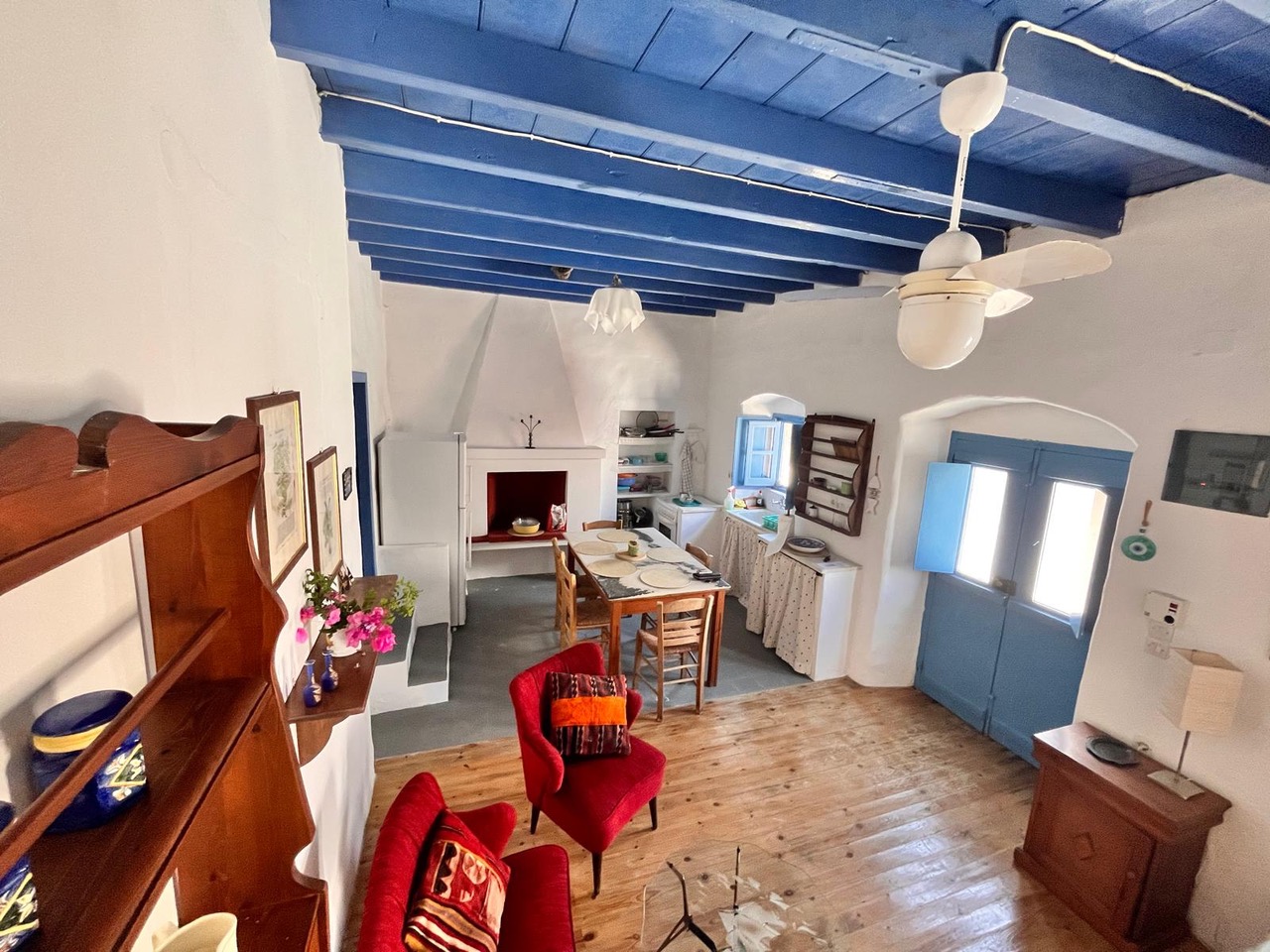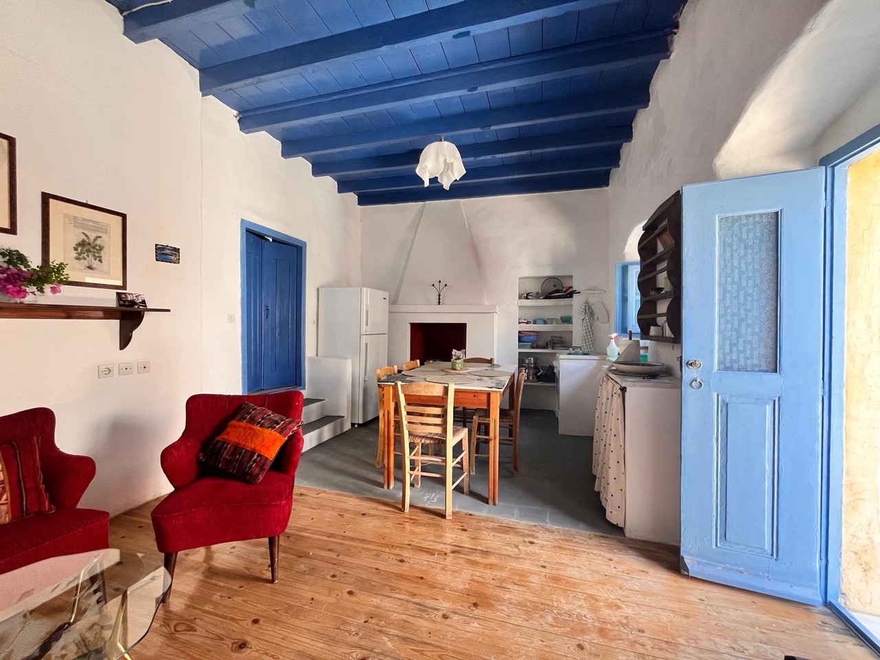 Two bedroom traditional Greek house, 1 double bedroom, 1 bedroom with a bunk bed and two single beds in open lounge with kitchen
